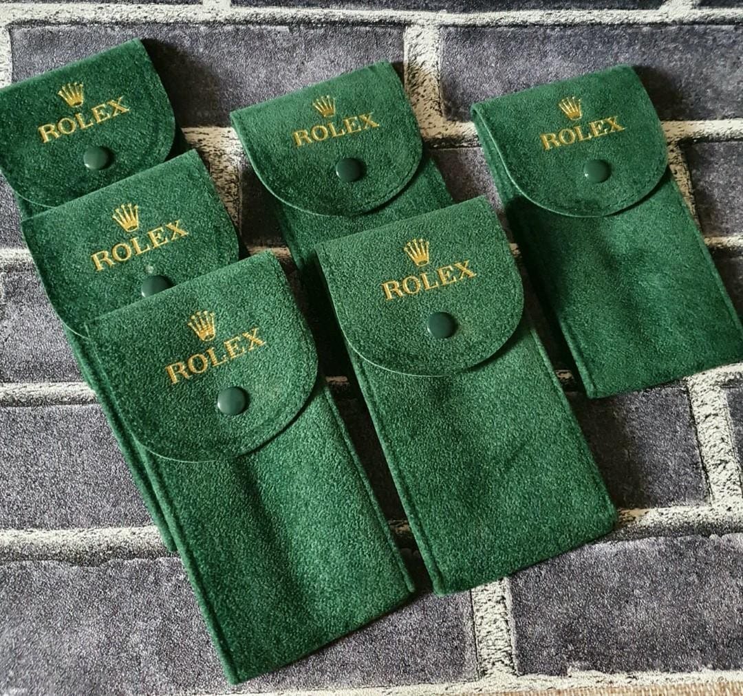 Sac Rolex en velours doux de couleur verte – un accessoire luxueux qui ajoute une touche de raffinement à chaque utilisation,